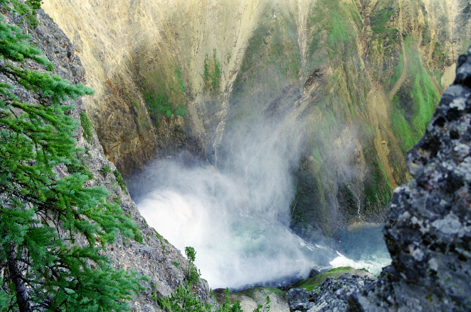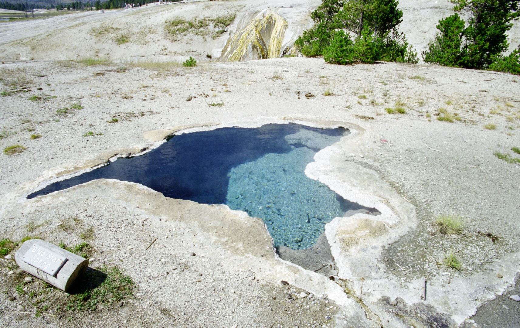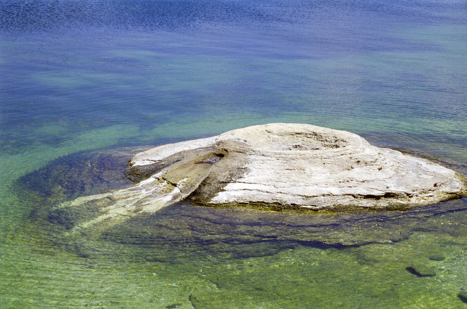 We hummed over the border between Grand Teton and Yellowstone National Parks. Sid headed directly toward West Thumb, a spot at Yellowstone Lake where I was to first encounter serious hot springs. The smell was incredible, but ponds with crystal clear, blue water, rimmed with white salts, invited for a bath. Alas, a few weeks after our visit, a threesome of Americans made this dream come true, ignoring all warnings that the water is about 180°F (80°C). I think that one of them, a girl, did not survive.