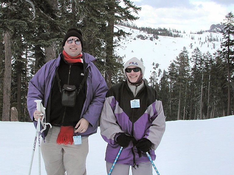 On Sunrise we felt the first time that there ain't no jokin' with the weathermen - wind was blowing heavily across the ridges of Sierra Nevada, several last yards of the lift ride were almost unbearable, despite educational signs on lift pylons, which tried to entertain us with a story about an old trail where ancient ox teams and pioneers fought through the pristine wilderness westwards to gold-bearing rivers of Eldorado. On the top, wind swept our briskly across a polished icy plain behind the ridge -- and it was quiet again. There were two wide groomed slopes available, but you can ski in an area over a mile wide. And so were we, sliding down among pines and firs, with the only sound being that of our skis breaking through virgin surface. It reminded me of skialpinism, and Sid, immersed down to his knees in deep powder, yelled that we gotta take a picture of this. Then he added that he was hungry -- there was no other way than to return back to our car.