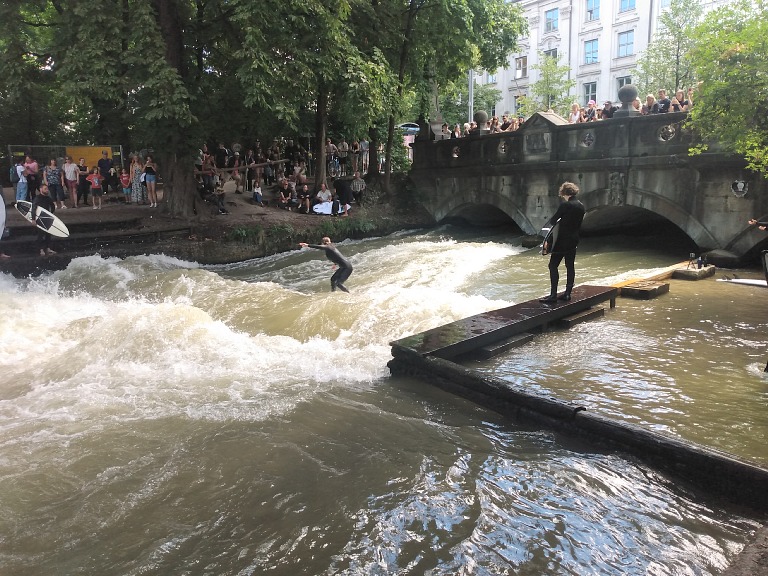 | Eisbachwelle: urban surfing is a popular curiosity. |