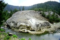 Our professional guide was very relaxed and easy, on flat sections we chatted sociably about rafting, forest fires (there were two daddy-o's with three young boys along with us in the raft, and one of them was a fireman), life in general. It seems we were lucky, for a second raft was run by the owner of the rafting company, and she insisted on some kind of organized cheering and having fun by the book ("yes, we're the best, we got so nicely through, and let us all clap together, isn't this fun!!!") which usually invokes a vomiting reflex in me.