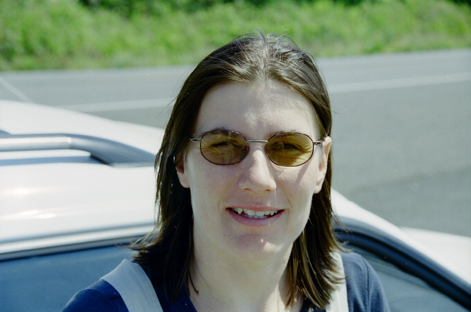 John Smith byl v lese zaměstnán jako požární hlídka a zjevně byl nadšen, že si má s kým povídat. Skejsli jsme s ním určitě dýl než hodinu. Povídal nám, jak hasej požáry — auto vysadí do lese tlupu chlapů s lopatama, která může udělat jen to, že vykope příkop, aby se požár nešířil. Protože v lesích nejsou silnice a cesty, na mnoho míst se žádná technika nedostane.