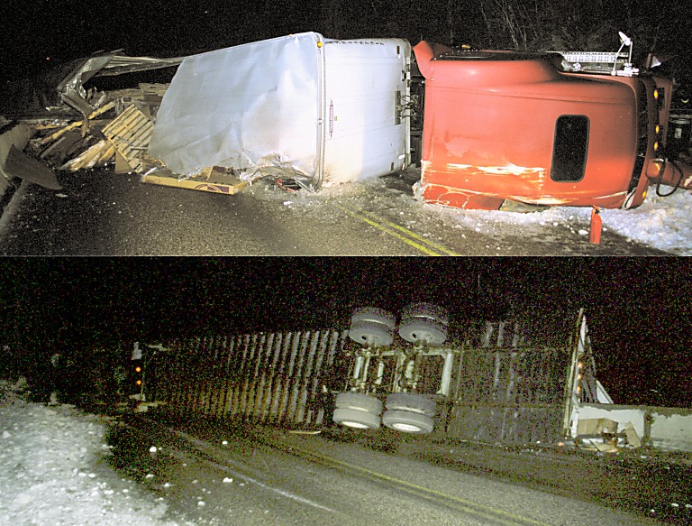 | Snow, ice, and a narrow road through a canyon... fortunately nobody was hurt |