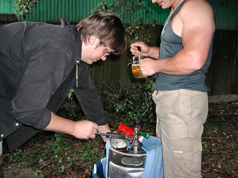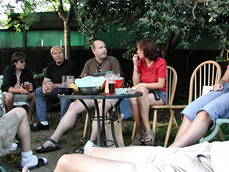 We drove home to sleep it off, ate lunch out, and continued smoothly to a much better occasion we were invited to attend -- our friend Peter bought a fifty litre keg of excellent beer and asked a relatively numerous company to a party on his landlord's back yard.