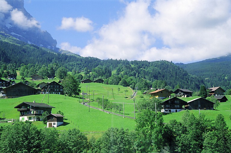Still, everything comes to an end, even driving through Switzerland. Towards the evening, we were getting closer to Grindelwald and imagining, how we would find another easy, quiet, small alpine village, like Obertraun. Instead, we arrived to an alpine touristic center. Don't get me wrong -- the alpine part of it relates to the Alps only by proximity, possibly by offering a view. And plenty of cableways, hotels, and upscale restaurants. And an unbelievable volume of small stores, where you can buy the only genuine, Swiss mountaineering equipment. Take, for example, two color-matched quickdraws that would elegantly ring, hung on your backpack (I'm not kidding, I saw several "rough sportsmen" thus equipped) - if possible, in a fashion that everybody could see that you're an established climber. You may also purchase telescopic poles - those are extremely practical for extending them inside a heavy crowd down town. I'm not even mentioning all kinds of clothing, about twice as expensive as in the U.S. (and three times as in Czech), sleeping bags, and other stuff.