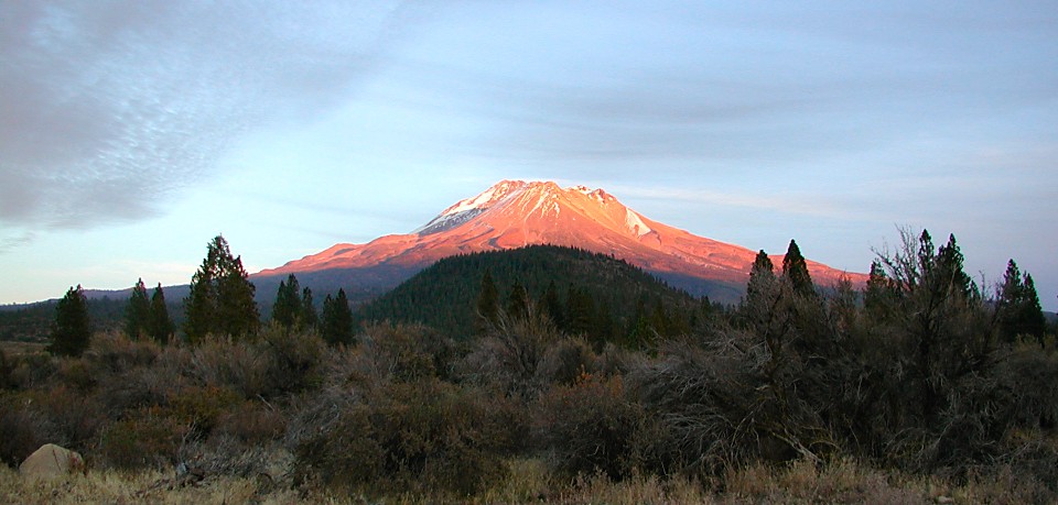 | Mt Shasta leží mezi Lassen NP a Crater NP - protentokrát osobní seznámení vynecháváme a obdivujeme jen z dálky - tahle čtyřkilometrová krasavice je asi o trochu náročnější. |