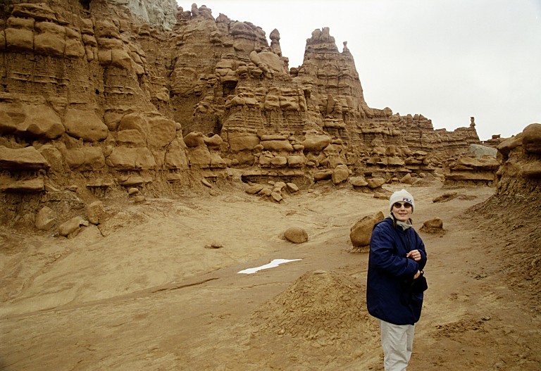 Opět jsme byli valnou část návštěvy mezi Gobliny sami. Na parkovišti sice přistál bydlík, ale jeho obyvatelé jen pohlédli do údolí a zalezli dovnitř. Goblini se nacházejí v poušti - není kolem nich mnoho keřů nebo trávy a ve vlhké zimě (sníh, déšť) se může údolí změnit v kaňon říčky, či rybníček. Nás ale trocha bláta odradit nemůže, vesele jsme čvachtali a fotili, vděčni, že se nám v záběrech nepotloukají cizí děti nebo maminy.