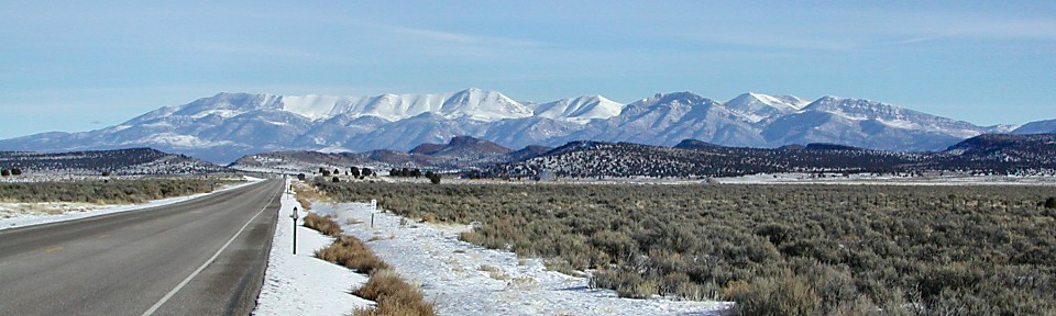 Další mateřská osoba, pokladní u pumpy, konstatovala, že je krásné počasí a že nám ten nový rok báječně začíná a měla pravdu. Dalších asi padesát mil se jelo skoro samo - rovná silnice, zajímavá krajina (kdo kdy přišel na to, že je poušť nudná?), prostě pohoda. Pak jsme ale sjeli z náhorní plošiny do mlhy, což bylo o něco horší, zvlášť když se začaly ozývat moje nepřeberné ranní kávy. V poušti se není kde schovat, toužebně jsme vyhlíželi civilizaci. Naprosto překvapivě se objevila Black Rock Station. Jenom pro ilustraci - tahle stanice má adresu "75 mil jihozápadně od Ely po silnici č. 6". Kromě benzínu a čokolád měli Al & Carol Drayton i záchod a navíc ohradu s bizonama. Pokecali jsme o počasí a ujistili je, že až se zvedne mlha, budou mít krásně.