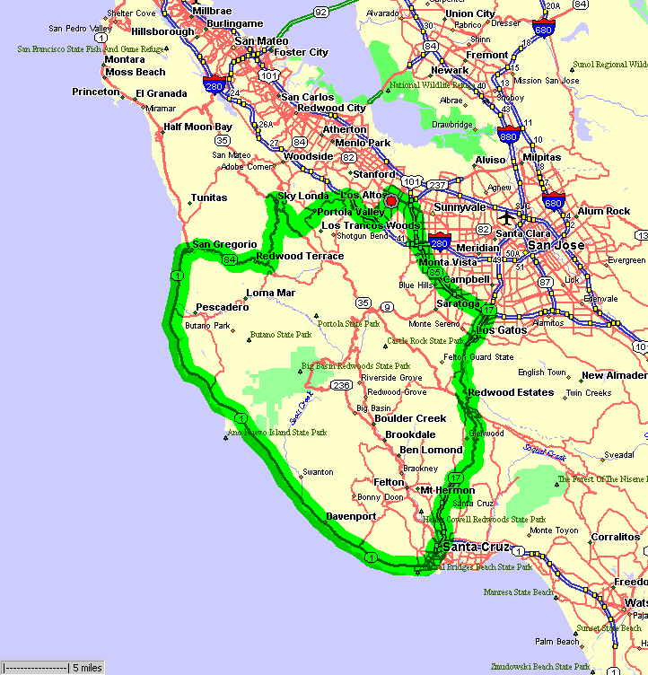 Though I mentally yearned to go ski again, my physical condition still did not allow for any greater exertion (I even did not feel like CLIMBING!!!). We therefore opted for a pleasant combination of resting and a small trip. We never visited Ano Nuevo reservation at the Pacific coast during my one and half year stay here, and I also wished to photograph a lighthouse at Pigeon Point. Ano Nuevo is famous for rare elephant seal colony -- alas, in the time when they have offspring, rangers would only let you hike on a less interesting part of the peninsula -- only guided tours may approach the elephant seals and we could not find any information on how to arrange for a guide. We did not care much, though, for we really wanted to go hiking anyway, enjoy a view of the ocean and an easy afternoon before leaving for a sunset at Pigeon Point.