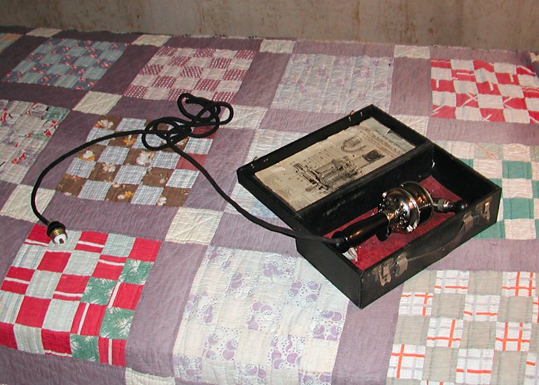 War puritanism had an unforeseen side effect -- rooms that were barred in 1943 stayed empty and inaccessible -- until Rudy Giecek got to them. He collected all things that were left laying around. A pair of shoes, chewing gum wrappers, tubes with vaginal jelly, dilapidated clothes, cocaine packings, Havana cigar tips (they'd be contraband today), bottles that used to contain opium, beer bottles, perfumes, disinfectants, and an amazing form of lipstick. All metals were slanted for arms industry, and it was forbidden to waste them on "silly" stuff like rouge. So they started producing lipstick in the form of "matches" -- a little amount of rouge on a carton stick. Later they figured how to make carton cartridges similar to the original metallic ones. Rudy left original posters hanging on walls, including some indecent clips. He found erotic toys -- a small whip curled under one bed, or a four pound electric vibrator, with a plug that fits lightbulb socket -- the only one available in cribs. Surprising was a setting on a brothel timer found on one door -- it metered ten minutes -- only so much time had a customer to perform.