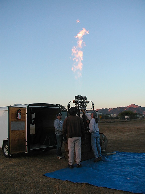 OK, maybe it's not exactly like this, but this is how the story comes from Brent (a balloon pilot), and since he serves Champagne while telling it, I never felt an urge to challenge its veracity (after all, wine fits to every occasion!). Oops, I'm getting ahead of myself here, bubbles are being served after landing and you don't know yet, why and how we happened to stand one cold morning on a field near an airport in Morgan Hill!