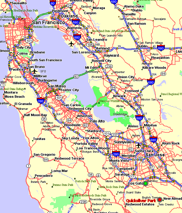| Silicon Valley from Quicksilver you can picture the gigantic proportion of urban coverage of the San Francisco Bay (the bay itself starts farther down beyond a curtain of haze on the horizon) |