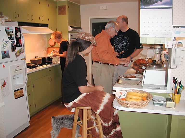Overshadowed by our bed games, Thanksgiving had arrived quickly. It was my third one here in America -- and it's becoming a deja vu - a visit at Kren's, waiting for the turkey, mastering a roasted turkey out of the oven and onto our plates, lots of wine. This holiday smells of excellent food out of a hot oven and I love it. Its a training for Christmas, yet without crazy Santa Clauses, without red-nosed reindeers, and without gift shopping madness. Food is the central theme of the day, instead of being prelude to another climax (= presents). And so one can relax sitting around a table, chat, eat, drink and enjoy our good life.