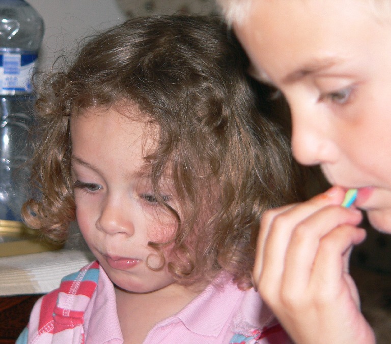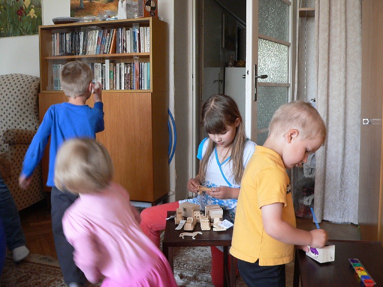 First guests started to arrive in the afternoon. Jitka with Liduška, Míša and Víteček, and Martina with Eliza. I was amazed how relaxed can an afternoon turn out to be in a single bedroom flat with six children, although in one moment, a pooping queue formed in the corridor, while Eliza, through our ignorance, learned about the existence of water colors, besides crayons and pencils, hitherto kept secret from her by her own mother.
