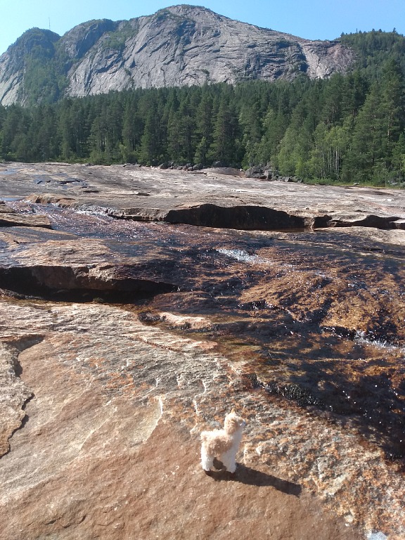 Carolin maskot na řece Fisstøylsåni u Brokke. |